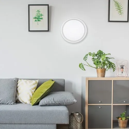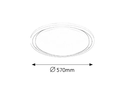Modern megjelenésű mennyezeti lámpa beépített energiatakarékos LED izzókkal, 3 kapcsolási funkcióval. 57 cm átmérőjű, fémből és műanyagból készített szerkezet és lámpabúra fehér színben, IP20-as védettséggel. A beépített LED izzók A energiaosztályú, teljesítménye 36W, amelyhez 2520 lumen fényerő társul. Színhőmérséklete melegfehér (3000 Kelvin). A lámpatestben a izzó nem cserélhető.