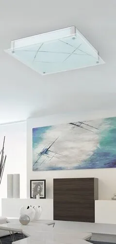 Minimalista stílusú, modern megjelenésű mennyezeti lámpa beépített energiatakarékos LED fényforrással. 48x 48 cm széles, fehér és króm színű fém lámpatest és üveg lámpabúra. A beépített LED fényforrás A+ energiaosztály besorolású és 36W teljesítmény mellett 2700 lumenes fényerőt, valamint 3000 Kelvines, természetes fehér színű fényt biztosít. 5 év garanciával. A lámpatestben a fényforrás nem cserélhető.