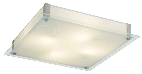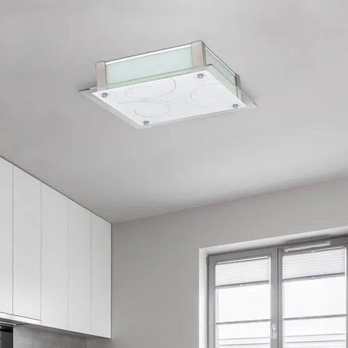 Minimalista stílusú, modern megjelenésű mennyezeti lámpa beépített energiatakarékos LED fényforrással. 48 x 48 cm széles, fehér és króm színű fém lámpatest és üveg lámpabúra. A beépített LED fényforrás A+ energiaosztály besorolású és 36W teljesítmény mellett 2700 lumenes fényerőt, valamint 4000 Kelvines, természetes fehér színű fényt biztosít. 5 év garanciával. A lámpatestben a fényforrás nem cserélhető.