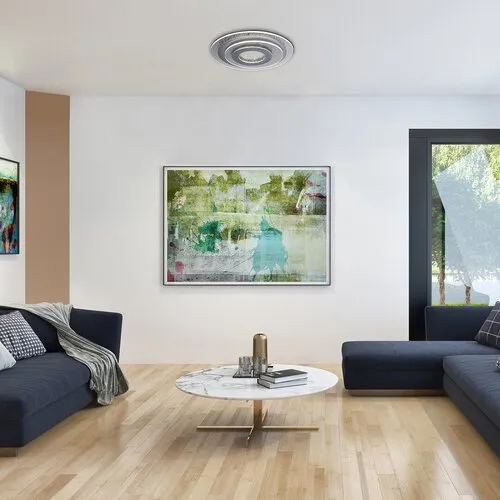 A Thalassa mennyezeti lámpa remek választás lehet szinte bármely modern nappaliba, hálószobába vagy dolgozószobába. A fém lámpatestből és akril búrából álló modell ezüst-átlátszó színben készül, a kerek lámpa méretükben csökkenő, korong alakú elemekből tevődik össze. A mennyezeti lámpa energiatakarékos, beépített LED fényforrással rendelkezik, amelynek teljesítménye 40 W, fényereje 2300 lumen, élettartama pedig 20 000 óra. A fényforrás színhőmérséklete 4000 K, ennek megfelelően természetes fehér fénnyel világít, modern, tiszta hatást keltve a helyiségben. A Thalassa mennyezeti lámpa méretei a következők: átmérője 400 mm, mennyezettől mért távolsága 60 mm, beépítési átmérője 280 mm. Erre az izgalmas modellre 5 év garanciát vállalunk.