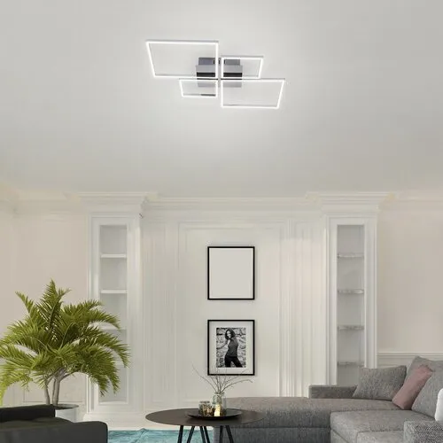Az Azra mennyezeti lámpát azoknak ajánljuk, akik kedvelik a látványos megoldásokat. A modern stílusú nappalinkban felszerelt Azra mellett bizonyosan nem mennek el szó nélkül vendégeink. A fémből készült, króm színű lámpa egyedi dizájnját a szögletes formák változatos mérete és kreatív elrendezése adja. A mennyezeti lámpa energiatakarékos, beépített LED fényforrással rendelkezik. A beépített LED fényforrás energiafogyasztása 40 W, fényereje 3200 lumen, élettartama 20 000 óra. A lámpa színhőmérséklete 4000 K, azaz természetes fehér fénnyel világítja meg az adott helyiséget. Az Azra extra funkcióval is rendelkezik: 3 lépésben, fali billenőkapcsoló segítségével dimmelhető, azaz fényereje igény szerint, a kapcsoló le-fel kapcsolásával változtatható. A lámpa mérete 740x460 mm, mennyezettől való távolsága pedig mindössze 50 mm. A csodás Azra mennyezeti lámpára 5 év garanciát vállalunk.