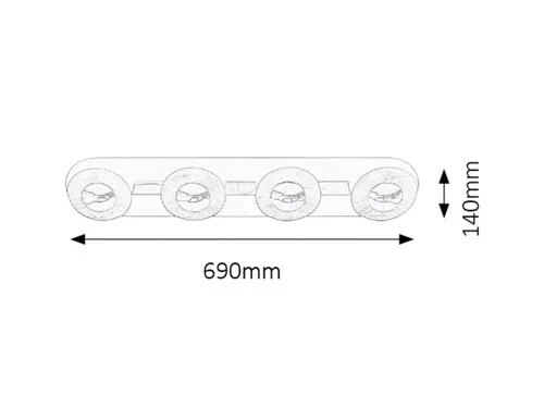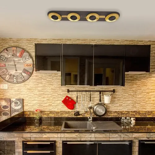 Modern megjelenésű, indirekt megvilágítást nyújtó mennyezeti lámpa beépített energiatakarékos LED fényforrásokkal. 69 cm széles, barna és arany színkombinációjú, fémből készített szerkezet IP20-as védettséggel. A beépített LED fényforrások A+ energiaosztály besorolásúak. 4x 5W teljesítmény mellett 4x 400 lumenes fényerőt, továbbá 3000 Kelvines, melegfehér színű fényt adnak. 5 év garanciával. A lámpatestben a fényforrások nem cserélhetők.