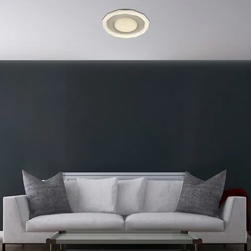 A modern és elegáns Siren mennyezeti lámpát azok figyelmébe ajánljuk, akik kedvelik a finom, romantikus megjelenésű lámpákat. A fémből és műanyagból készült modell fehér színével, körben mintázott peremével és csillogó belső részével igazán különleges darabja lehet nappalink, étkezőnk vagy esetleg az előszoba berendezésének. A Siren finomsága ugyanakkor hasonlóan ízléses berendezést kíván meg maga köré. Ez a gyönyörű mennyezeti lámpa beépített LED fényforrással rendelkezik, amelynek teljesítménye 50 W, fényereje 3390 lumen, színhőmérséklete 4000 K. A természetes fehér fénnyel világító fényforrás modern, tiszta hatást kelt az adott helyiségben. A Felicity átmérője 485 mm, mennyezettől való távolsága 90 mm. Erre az elegáns mennyezeti lámpára 5 év garanciát vállalunk.