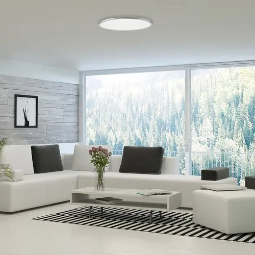 A fémből és műanyagból készült Taleb mennyezeti lámpa funkcionális stílusával és extra felszereltségével ideális választás bármely modern otthonba. Az ezüst színű, ovális modellt elsősorban a nappaliba vagy a hálószobába ajánljuk. A beépített LED fényforrás energiafogyasztása 50 W, fényereje 4000 lumen, élettartama 30 000 óra. A Taleb színhőmérséklete 3000-6000 K között tetszés szerint változtatható, azaz képes meleg, természetes vagy éppen hideg fehér fénnyel világítani. A mennyezeti lámpa ezenkívül dimmelhető is, azaz fényereje változtatható, beleértve az éjszakai funkciót is. Továbbá memória funkcióval is rendelkezik, azaz a lámpa megjegyzi a kikapcsolás előtti utolsó beállítást, és a következő bekapcsoláskor úgy világít. A vezérlést távirányító segítségével végezhetjük. A vékony kialakítású Taleb hosszanti átmérője 800 mm, keresztirányú átmérője 500 mm, mennyezettől való távolsága 50 mm. Erre az okos modellre 5 év garanciát vállalunk.
