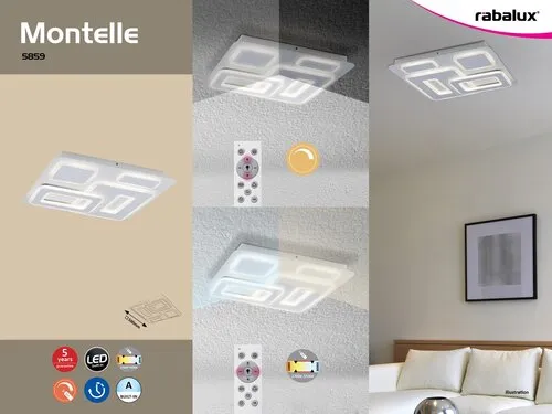 A Montelle mennyezeti lámpa mindent tud, amit csak egy modern lámpától kívánhatunk, ráadásul fantasztikus extra funkciói mellett még kreatív dizájnja is megkülönbözteti egy átlagos mennyezeti lámpától. Tökéletes választás lehet a nappaliba vagy a hálószobába, de egy tágas előszobában is elhelyezhetjük. A fémből és műanyagból készült, matt fehér színű lámpa beépített, energiatakarékos LED fényforrással rendelkezik. Az A energiaosztályba tartozó fényforrás teljesítménye 56 W, fényereje 2393 lumen, élettartama 20 000 óra. A lámpa színhőmérséklete tetszés szerint változtatható 2700-5500 K között, ami annyit jelent, hogy képes meleg fehér, természetes fehér vagy éppen hideg fehér fénnyel megvilágítani az adott helyiséget. De itt még nincs vége az extráknak: a Montelle dimmelhető, azaz fényereje igény szerint változtatható, ráadásul a szabályozást távirányító teszi még kényelmesebbé. A szögletes mennyezeti lámpa mérete 500x500 mm. Erre a fantasztikus modellre 5 év garanciát vállalunk.