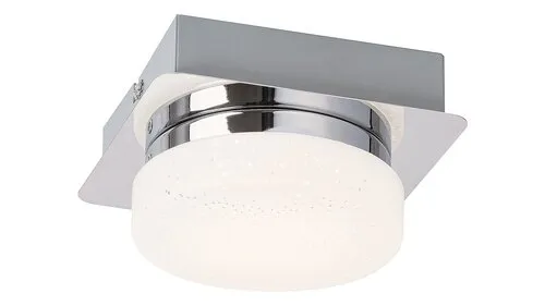 A kisméretű, csillogó effekttel készült, kerek Hilary mennyezeti lámpa igazán hangulatos kiegészítője lehet modern nappalink vagy hálószobánk berendezésének. Méretéből adódóan ez a modell különösen jól mutat, ha egymás mellé többet is felszerelünk belőle. A fémből és műanyagból készült, króm és opál színű lámpa beépített, energiatakarékos LED fényforrással rendelkezik. A fényforrás teljesítménye 5 W, fényereje 400 lumen, élettartama mintegy 20 000 óra. Színhőmérséklete 4000 K, ennek megfelelően természetes fehér fénnyel világítja meg környezetét. A lámpa szögletes dísztalpának mérete 130x130 mm. A Hilary mennyezeti lámpára 5 év garanciát vállalunk.