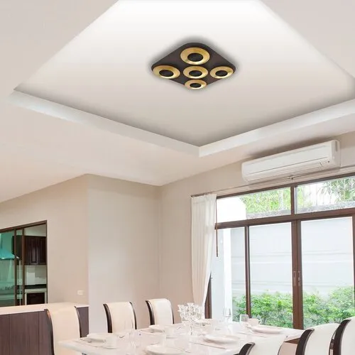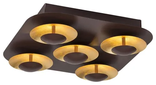 Modern megjelenésű, indirekt megvilágítást nyújtó mennyezeti lámpa beépített energiatakarékos LED fényforrásokkal. 34 x 34 cm széles, barna és arany színkombinációjú, fémből készített szerkezet IP20-as védettséggel. A beépített LED fényforrások A+ energiaosztály besorolásúak. 5x 5W teljesítmény mellett 400 lumenes fényerőt, továbbá 3000 Kelvines, melegfehér színű fényt adnak. 5 év garanciával. A lámpatestben a fényforrások nem cserélhetők.