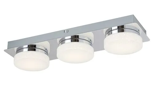 A csillogó effekttel készült Hilary hármas mennyezeti lámpa igazán hangulatos kiegészítője lehet modern nappalink vagy hálószobánk berendezésének. A fémből és műanyagból készült spotlámpa króm színű testét opál búrák egészítik ki, melyek alatt három darab beépített, energiatakarékos LED fényforrás rejtőzik. A fényforrások teljesítménye összesen 15 W, fényerejük 1200 lumen, élettartamuk mintegy 20 000 óra. Színhőmérsékletük 4000 K, ennek megfelelően természetes fehér fénnyel világítják meg környezetüket. A lámpa szögletes dísztalpának hossza 430 mm. A Hilary hármas mennyezeti lámpára 5 év garanciát vállalunk.