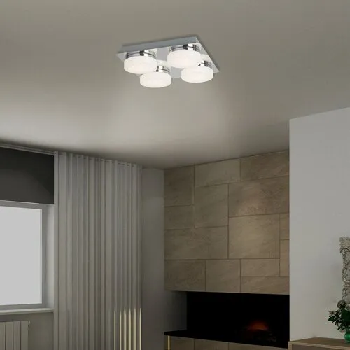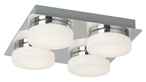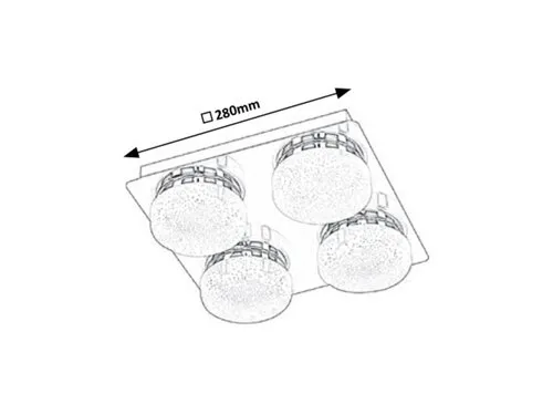 A csillogó effekttel készült Hilary négyes mennyezeti lámpa elegáns és hangulatos kiegészítője lehet modern nappalink vagy hálószobánk berendezésének. A fémből és műanyagból készült spotlámpa króm színű testét opál búrák egészítik ki, melyek alatt négy darab beépített, energiatakarékos LED fényforrás rejtőzik. A fényforrások teljesítménye összesen 20 W, fényerejük 1600 lumen, élettartamuk mintegy 20 000 óra. Színhőmérsékletük 4000 K, ennek megfelelően természetes fehér fénnyel világítják meg környezetüket. A lámpa négyzet alakú dísztalpának mérete 280x280 mm. A Hilary négyes mennyezeti lámpára 5 év garanciát vállalunk.