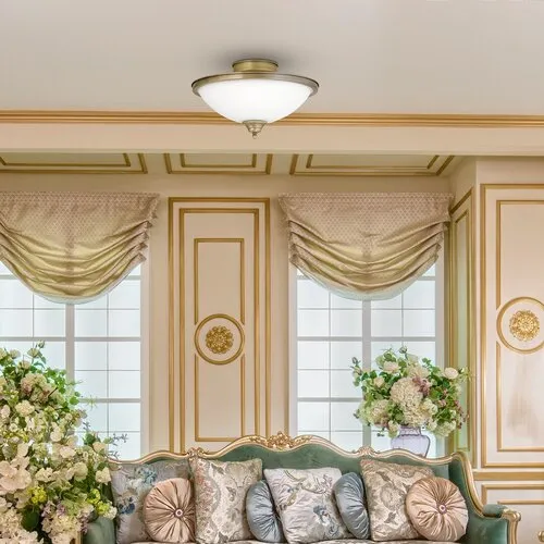 Klasszikus megjelenésű mennyezeti lámpa 2 darab foglalattal. 43 cm átmérőjű, 20 cm magas, bronz színű fémből készített lámpatest és fehér színű üveg lámpabúra, IP20-as védelemmel. A lámpatest E14-es foglalatú, max. 2x 40W teljesítményű, halogén vagy energiatakarékos fényforrásokkal is használható.