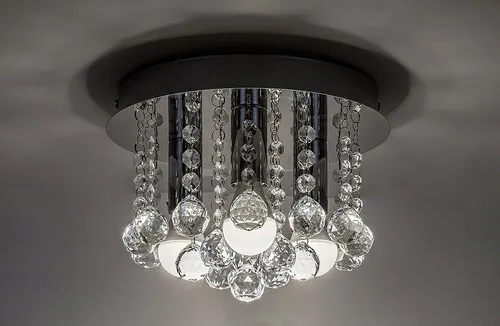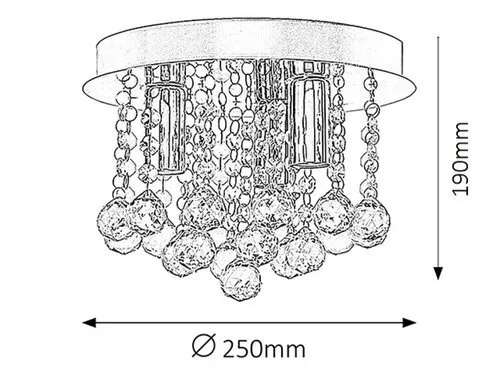 Modern megjelenésű mennyezeti lámpa 3 db foglalattal. 25 cm átmérőjű, króm színű fém test és akril kristály lámpabúra. A lámpatest E14-es foglalatkialakítású, max. 3x 40W teljesítményű energiatakarékos fényforrásokkal is használható.