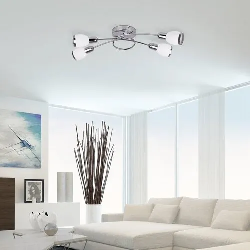 Modern megjelenésű mennyezeti spotlámpa 4 db foglalattal. 66 cm széles, króm színű, fémből készített lámpatest és pozícionálható üveg lámpabúrák. A lámpatest E14-es foglalatkialakítású, max. 4x 40W teljesítményű energiatakarékos fényforrásokkal is használható.