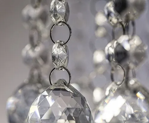 Modern megjelenésű mennyezeti lámpa 5 db foglalattal. 35 cm átmérőjű, króm színű fém test és akril kristály lámpabúra. A lámpatest E14-es foglalatkialakítású, max. 5x 40W teljesítményű energiatakarékos fényforrásokkal is használható.