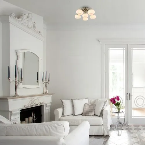 A klasszikus stílusú Sorina mennyezeti lámpa tradicionális berendezésű nappalink vagy hálószobánk jellegzetes és látványos kiegészítője lehet. Az antik bronz színű, fém lámpatestből és fehér üvegbúrákból álló modell kerek dísztalp segítségével rögzíthető a mennyezetre. A hat lámpafej a lámpa egy-egy ágáról csüng lefelé, a búrák jellegzetes formájúak, alul nyitottak. Ezzel a mennyezeti lámpával csodálatos, hangulatos megvilágítást varázsolhatunk a szobába. A Sorina hat darab, egyenként legfeljebb 40 W teljesítményű fényforrással használható, a foglalatok típusa E14. Ha a meghitt, otthonos hangulatot szeretnénk erősíteni, válasszunk hozzá meleg fehér fényű fényforrásokat. A Sorina mennyezeti lámpa méretei a következők: átmérője 485 mm, mennyezettől mért távolsága 205 mm, beépítési átmérője 180 mm. Ezt a modellt fényforrások nélkül szállítjuk.