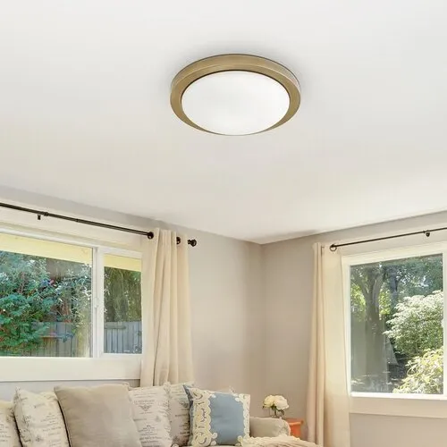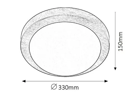 33 cm átmérőjű, klasszikus megjelenésű mennyezeti lámpa. Fém szerkezet fehér opálüveg lámpabúrával és bronz színű karimával. 2 darab E27-es foglalatban maximum 2x 40W teljesítményű, halogén vagy LED fényforrásokkal is használható.