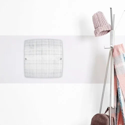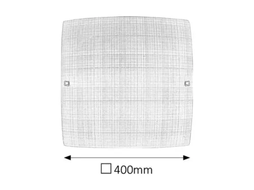 40 x 40 cm-es, időtlen stílusú mennyezeti lámpa. Fém szerkezet, vonalas mintájú, fehér domború kialakítású opálüveg lámpabúrával és króm színű díszcsavarokkal, 2 darab E27-es foglalattal. A lámpatest maximum 2x 60W teljesítményű, halogén vagy LED fényforrásokkal is használható. Kialakításának köszönhetően a fényforrások cseréje, illetve a lámpatest tisztítása gyorsan és egyszerűen elvégezhető.