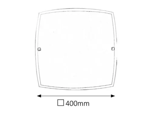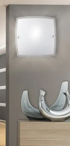 Modern megjelenésű mennyezeti lámpa 2 db foglalattal. 40 cm széles, fémből készített test fehér opálüveg lámpabúrával és króm színű rögzítő csavarokkal. A lámpatest E27-es foglalatkialakítású, max. 2x 60W teljesítményű hagyományos és energiatakarékos fényforrásokkal is használható.