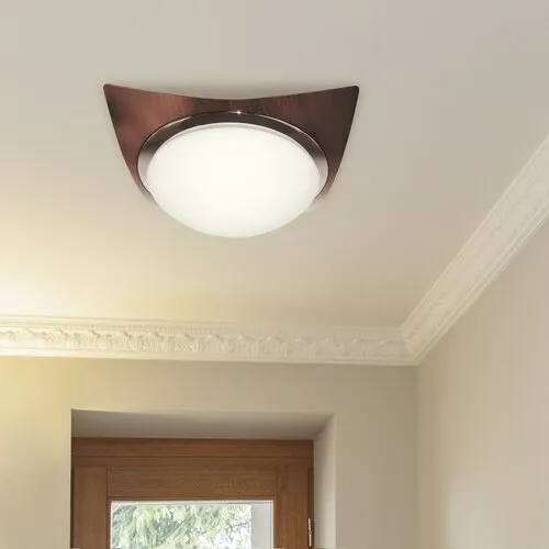 33.5 x 33.5 cm-es, modern megjelenésű mennyezeti lámpa. Fényes krómbetétes, wenge famintás, fém szerkezet fehér opálüveg lámpabúrával. 2 darab E27-es foglalatban maximum 2x 60W teljesítményű, halogén vagy LED fényforrásokkal is használható.