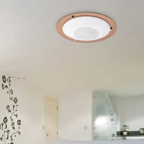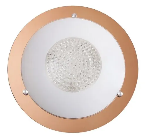 Exkluzív megjelenésű mennyezeti lámpa 3 db foglalattal. 42 cm átmérőjű, fémből készített rózsaarany színű lámpatest és fehér színű üveg lámpabúrával, áttetsző üvegkristály díszítéssel. A lámpatest E27-es foglalatú, max. 3x 40W teljesítményű energiatakarékos fényforrásokkal is használható. Kialakításának köszönhetően a fényforrások cseréje és a lámpatest tisztítása könnyen és egyszerűen elvégezhető.