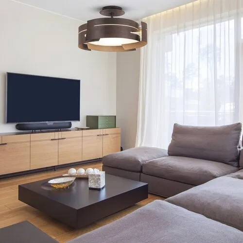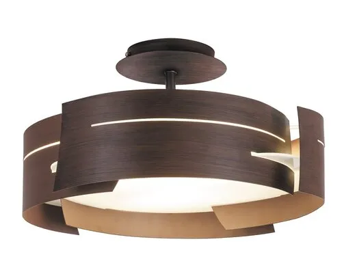 Modern megjelenésű mennyezeti lámpa 3 db foglalattal. 25 cm lelógású, 48 cm átmérőjű, wenge színű, fémből készített testtel ésműanyag lámpabúrával. A lámpatest E27-es foglalatkialakítású, max. 3x 60W teljesítményű energiatakarékos fényforrásokkal is használható.