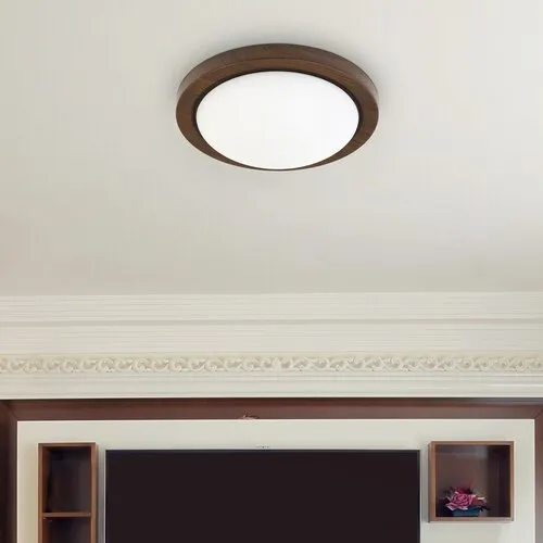 26.5 cm átmérőjű, klasszikus megjelenésű mennyezeti lámpa. Fém szerkezet fehér opálüveg lámpabúrával és wenge famintás karimával. E27-es foglalatú, maximum 40W teljesítményű, halogén vagy LED fényforrással is használható.