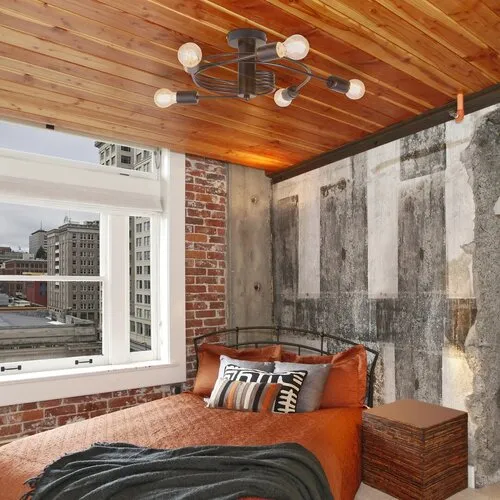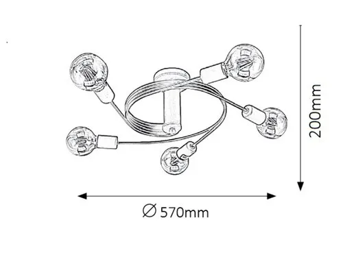 Indusztriális stílusú mennyezeti lámpa 5 db foglalattal. 57 cm átmérőjű, matt fekete színű, fémből készített szerkezet IP20-as védettséggel. A lámpatest E27-es foglalatkialakítású, 5x max. 15W teljesítményű, kizárólag energiatakarékos izzókkal használható.