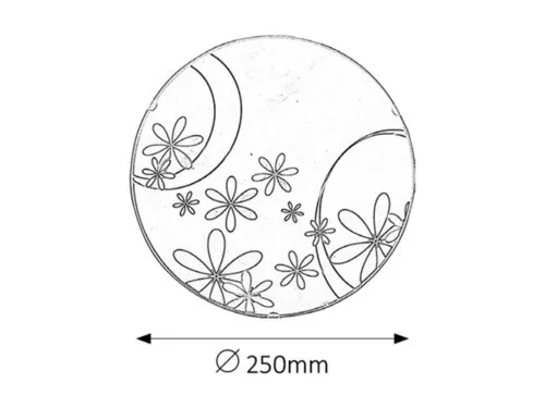 25 cm átmérőjű, időtlen, mégis harmonikus megjelenésű mennyezeti lámpa, fém és műanyag szerkezettel, üveg lámpabúrával, színes kivitelben. E27-es foglalatú, maximum 60W teljesítményű, halogén vagy LED fényforrással is használható. Kialakításának köszönhetően a fényforrás cseréje, illetve a lámpatest tisztítása gyorsan és egyszerűen elvégezhető.