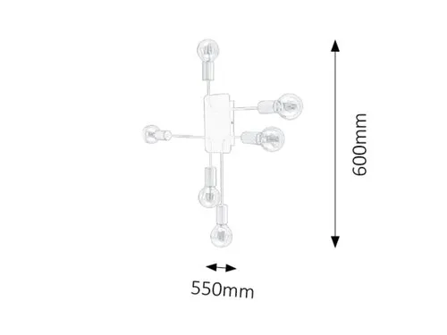 Indusztriális stílusú mennyezeti lámpa 6 db foglalattal. 60 cm széles, fekete és arany színű, fémből készített szerkezet IP20-as védettséggel. A lámpatest E27-es foglalatkialakítású, 6x max. 15W teljesítményű, kizárólag energiatakarékos izzókkal használható.