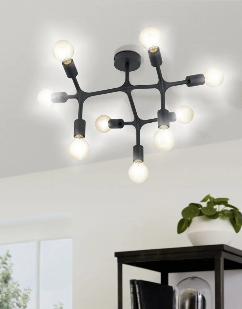 Beltéri mennyezeti lámpa E27 9x60W fekete Bocadella