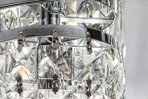 A klasszikus stílusban készült Rosanna fürdőszobai mennyezeti lámpa elegáns és látványos kiegészítője lehet tradicionális fürdőnk berendezésének. A krómszínű, fém lámpatestet átlátszó üvegkristály búra egészíti ki, a lámpa nagyméretű, kerek dísztalp segítségével rögzíthető a mennyezetre. A Rosanna ragyogó fényével és előkelő megjelenésével csodás hangulatot varázsol a fürdőszobába. A mennyezeti lámpa öt darab, egyenként legfeljebb 40 W teljesítményű fényforrással használható, a foglalatok típusa G9. Ha a meghitt, otthonos hangulatot szeretnénk erősíteni, válasszunk a lámpához meleg fehér fényű fényforrásokat. A fürdőszobai lámpa átmérője 380 mm, mennyezettől mért távolsága 215 mm. Ezt a modellt fényforrások nélkül szállítjuk.
