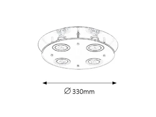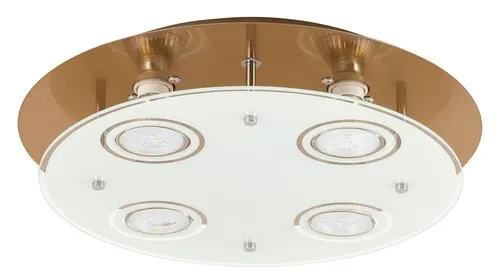 Modern megjelenésű mennyezeti lámpa energiatakarékos LED fényforrásokkal. 33 cm átmérőjű, fém és üveg kombinációjú szerkezet bronz színben. A lámpatestben elhelyezett LED fényforrások A+ energiaosztály besorolású és 4x 5W teljesítmény mellett 400 lumenes fényerőt, valamint 3000 Kelvines, melegfehér színű fényt biztosítanak. Fényforráscsere esetén a lámpatest GU10-es foglalatkialakítású, 4x max. 15W teljesítményű, kizárólag energiatakarékos fényforrásokkal használható.