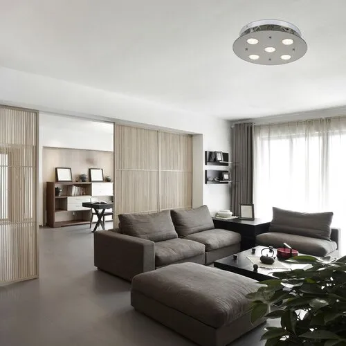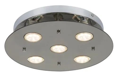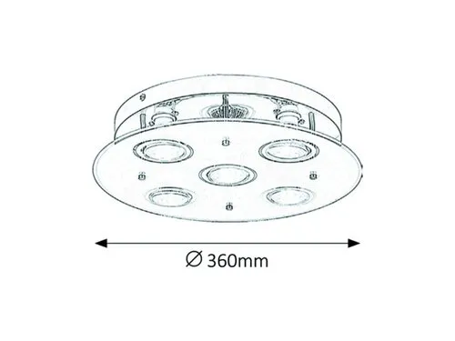 A cserélhető LED fényforrásokkal szerelt Naomi mennyezeti lámpa modern és elegáns megoldást kínál a nappali, az étkező vagy akár a hálószoba megvilágítására. A füstszínű üveg és króm kombinációjával készült kerek lámpa átmérője 360 mm, 5 db energiatakarékos LED fényforrása meleg fehér fénnyel látja el a helyiséget. A LED fényforrások egyenként 5 W energiát fogyasztanak, fényerejük 400 lumen, színhőmérsékletük 3000 K, névleges élettartamuk mintegy 20 000 óra. A GU10-es típusú foglalatokba 5 db, egyenként maximum 15 W teljesítményű LED fényforrás helyezhető be. A Naomi kerek mennyezeti lámpa nettó súlya 1,5 kg.