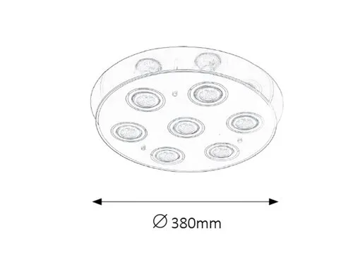 Modern megjelenésű mennyezeti lámpa energiatakarékos LED fényforrásokkal. 38 cm átmérőjű, fém és üveg kombinációjú szerkezet bronz színben. A lámpatestben elhelyezett LED fényforrások A+ energiaosztály besorolású és 7x 5W teljesítmény mellett 400 lumenes fényerőt, valamint 3000 Kelvines, melegfehér színű fényt biztosítanak. Fényforráscsere esetén a lámpatest GU10-es foglalatkialakítású, 7x max. 15W teljesítményű, kizárólag energiatakarékos fényforrásokkal használható.
