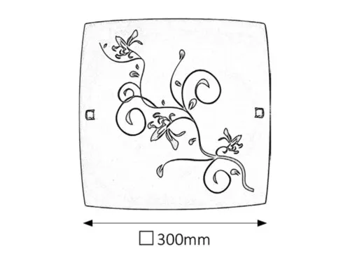 30 x 30 cm-es, modern, mégis időtlen stílusú mennyezeti lámpa, fém és műanyag szerkezettel, mintás, fehér, íves kialakítású opálüveg lámpabúrával, króm színű díszcsavarokkal. E27-es foglalatú, maximum 60W teljesítményű, halogén vagy LED fényforrásokkal is használható. Kialakításának köszönhetően a fényforrás cseréje, illetve a lámpatest tisztítása gyorsan és egyszerűen elvégezhető.