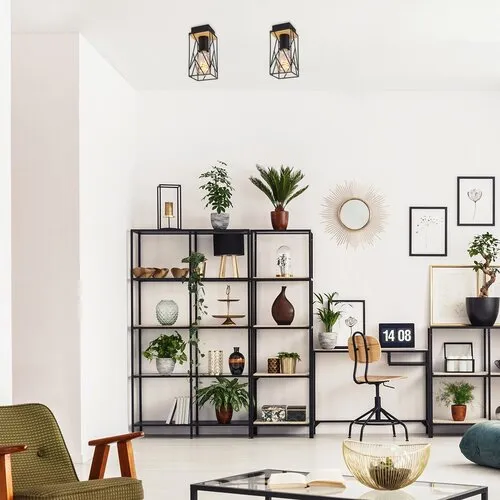 Az indusztriális stílusú Boire mennyezeti lámpa modern nappalink vagy hálószobánk hangulatos kiegészítője lehet. A fekete színben, fémből és fából készült modellt négyszögletes rácsos búra egészíti ki, amely teljes egészében látni engedi a fényforrást. A szögletes fém dísztalp tetején elhelyezett falap egy kis melegséget varázsol a Boire megjelenésébe. A lámpa egy darab legfeljebb 40 W teljesítményű fényforrással használható, a foglalat típusa E27. Ízlésünktől és a felszerelés helyétől függően választhatunk hozzá meleg vagy természetes fehér fényű fényforrást. Ha a hálószobában helyezzük el a mennyezeti lámpát, érdemes meleg fehér fényű fényforrással használni, amely segít otthonos, meghitt hangulatot teremteni. A Boire méretei a következők: szélessége 100 mm, mennyezettől mért távolsága 220 mm, beépítési átmérője 80 mm. Ezt a modellt fényforrás nélkül szállítjuk.