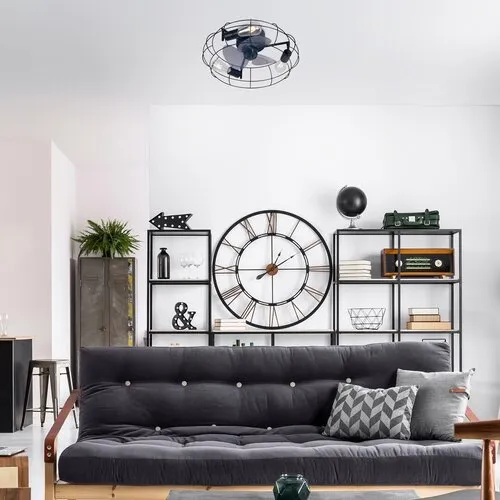 A ventilátorral ellátott Cadmus mennyezeti lámpát az indusztriális stílus azon kedvelőinek ajánljuk, akik egyúttal a praktikus megoldások hívei is. Ez a 2 az 1-ben modell remek szolgálatot tehet modern nappalinkban, különösen a meleg nyári napokon. A teljes egészében fém, fekete színű lámpa kisméretű, kerek dísztalppal készül. Ehhez kapcsolódik a ventilátor, valamint a három vízszintesen elhelyezett lámpafej. A Cadmus három darab, egyenként legfeljebb 25 W teljesítményű, E27-es fényforrással használható. Mivel az izzókat nem takarja búra, érdemes ezt a modellt a megszokottól eltérő formájú, esztétikus izzókkal használni. A három átlátszó lapáttal szerelt beépített ventilátor motorjának a teljesítménye 20 W, a percenkénti fordulatszám 1350, a zajszint 49,8 dB. A ventilátor egy 8–15 m2-es helyiség hűtésére alkalmas. A Cadmus mennyezeti lámpa méretei a következők: átmérője 480 mm, beépítési átmérője 150 mm, mennyezettől mért távolsága 165 mm.