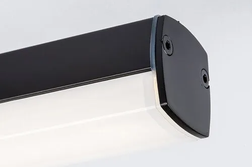 A matt fekete színben készült Evan fürdőszobai mennyezeti lámpa kreatív dizájnjával remek választás lehet modern fürdőszobánkba. A négy különböző irányban kinyúló, hasáb alakú elemekből álló lámpát szögletes, fekete dísztalp egészíti ki. A lámpatest anyaga fém és alumínium, a fehér búra műanyagból készül. A lámpa beépített LED fényforrással rendelkezik, amelynek a teljesítménye 18 W, fényereje 1750 lumen, élettartama 20 000 óra. A fényforrás színhőmérséklete 4000 K, ennek megfelelően természetes fehér fénnyel világít. Az Evan IP44-es védettséggel rendelkezik, amely garantálja, hogy legfeljebb 1 mm átmérőjű tárgyak behatolása ellen, valamint bármilyen irányból fröccsenő víz ellen védett. A mennyezeti lámpa mérete 425x425 mm, mennyezettől mért távolsága 65 mm. Erre a modellre 5 év garanciát vállalunk.