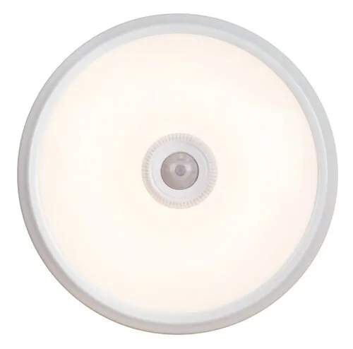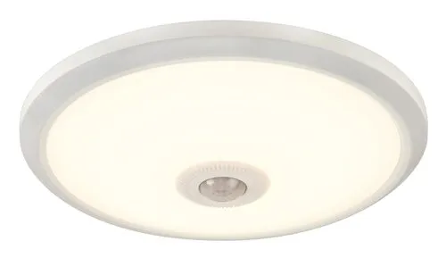 Időtlen megjelenésű, mozgásérzékelős mennyezeti lámpa beépített energiatakarékos LED fényforrással. 28,5 cm átmérőjű, fehér színű, fémből készítet lámpatest és műanyag lámpabúra. A beépített LED fényforrás A energiaosztályú besorolás és 12W teljesítmény mellett 720 lumenes fényerőt és 4000 Kelvines, természetes fehér színű fényt biztosít. 5 év garanciával. A lámpatestben a fényforrás nem cserélhető. Elhelyezésekor vegye figyelembe, hogy a szenzor 120 fokos szögben, maximum 6 méter távolságig érzékeli a mozgást.