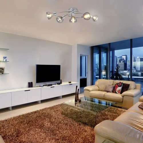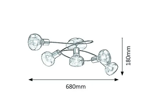 Modern és elegáns: a Holly ötös mennyezeti spotlámpa nem hagy megvilágítatlan sarkot egy tágasabb nappaliban vagy előszobában sem. A beltéri lámpa öt lámpafeje tökéletes megvilágítást biztosít a helyiségben, így nem lesz szükség kiegészítő fényforrásokra. Ezt a design lámpát füstszínű üveg lámpabúra és krómozott fém dísztalp teszi egyedivé. Az ötös spotlámpa teljes szélessége 680 mm, mennyezettől való távolsága 180 mm. A lámpa E14 típusú foglalataiba 5 db, egyenként legfeljebb 40 W teljesítményű, energiatakarékos izzót tehetünk. Választhatunk hozzá meleg fehér vagy természetes fehér színű izzókat, attól függően, hogy kellemes, meghitt hangulatot szeretnénk varázsolni, vagy a világosabb, tisztább fényt részesítjük előnyben. A lámpát fényforrás nélkül szállítjuk.