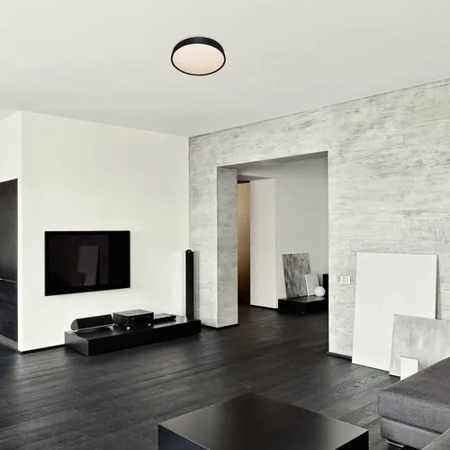 A kerek Larcia mozgásérzékelős mennyezeti lámpa univerzális darab: diszkrét megjelenésével bármely modern otthon nappalijába, hálószobájába, konyhájába vagy fürdőszobájába megfelelő választás lehet. A fekete színű, korong formájú modell fehér búrával, teljes egészében műanyagból készül. A Larcia a G energiaosztályba tartozó beépített LED fényforrással rendelkezik, amelynek a teljesítménye 19 W, fényereje búrával 1000 lumen, búra nélkül 1900 lumen, élettartama pedig igazán kiemelkedő: 50 000 óra! A természetes fehér fénnyel világító mennyezeti lámpa színhőmérséklete 4000 K. A szenzor 6 méter távolságból 120°-os látószögben érzékeli a mozgást, és a lámpa fényerejét a körülményeknek megfelelően változtatja. A Larcia IP44-es védettsége biztosítja, hogy 1 mm-nél nagyobb átmérőjű szilárd részecskék behatolása ellen, valamint bármilyen irányból fröccsenő víz ellen védett. A mennyezeti lámpa átmérője 285 mm, mennyezettől mért távolsága 70 mm.