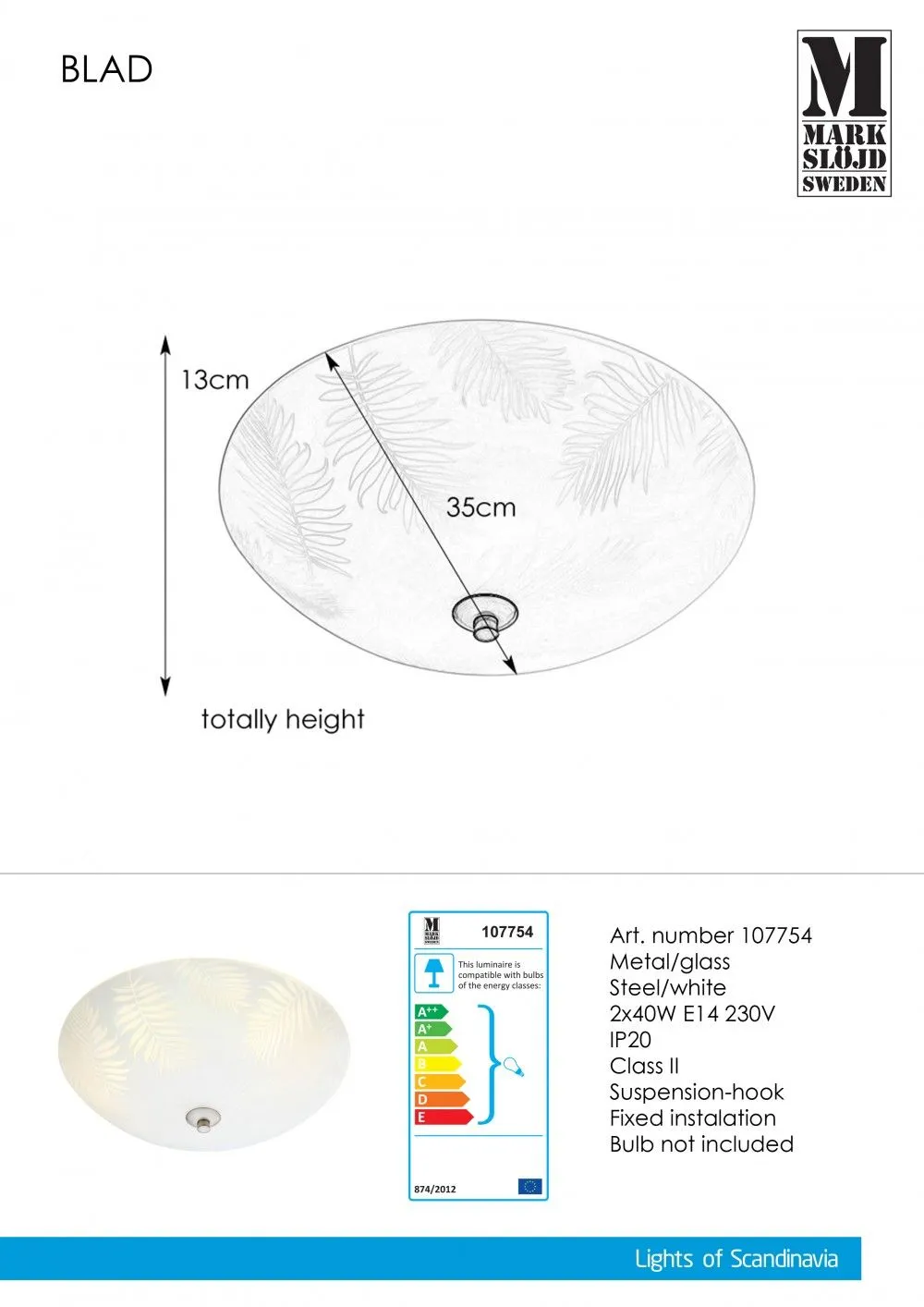 Markslöjd BLAD Beltéri mennyezeti lámpa E14 2x40W fehér