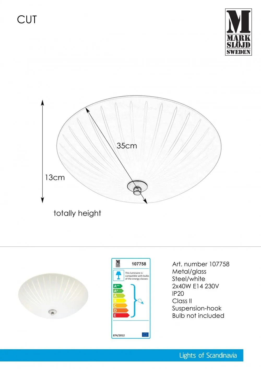 Markslöjd CUTBeltéri mennyezeti lámpa E14 2x40W fehér
