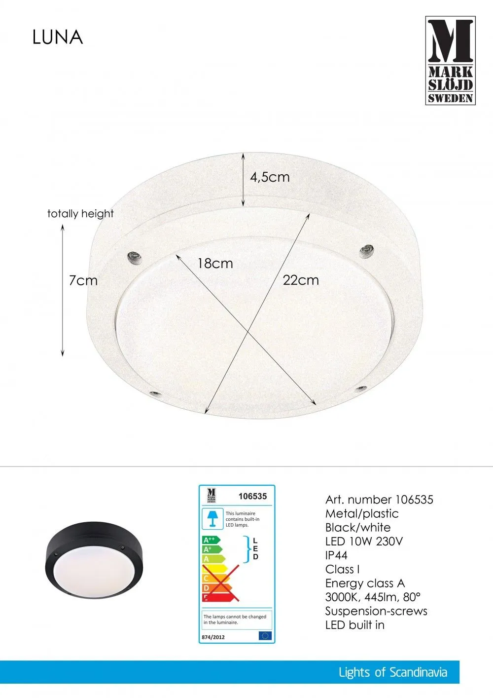 MARKSLÖJD LUNA LED mennyezeti lámpa 10W 445lm meleg fehér, fekete