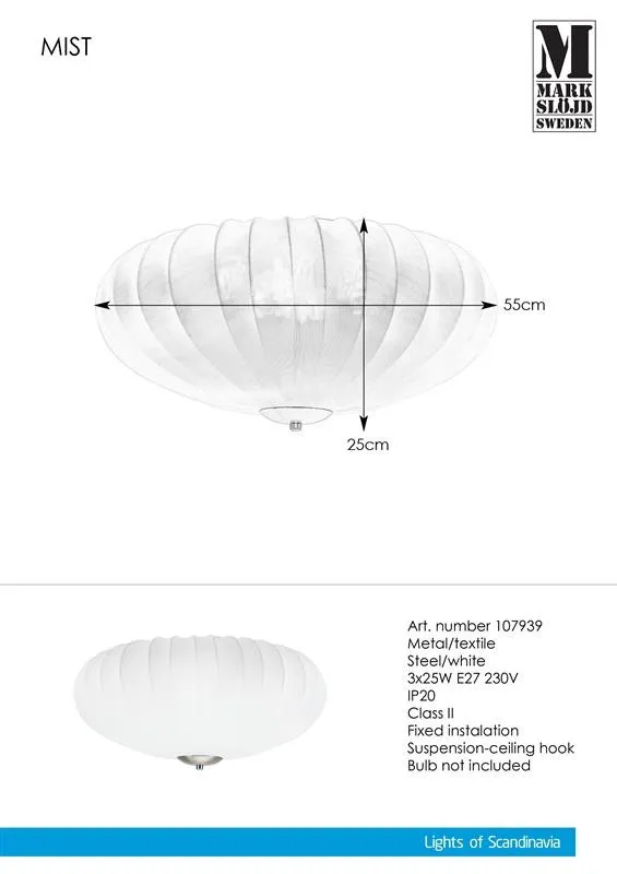 Markslöjd MIST Plafond E27 3x25W fehér