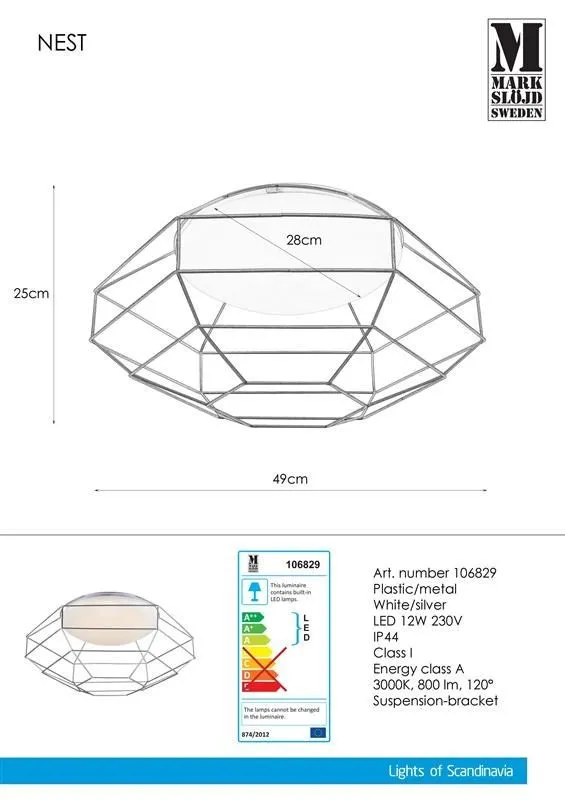 MARKSLÖJD NEST Beltéri LED mennyezeti lámpa 12W 800lm 3000K fehér, ezüst