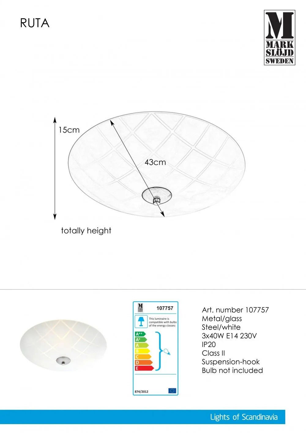 Markslöjd RUTA Beltéri mennyezeti lámpa E14 3x40W fehér