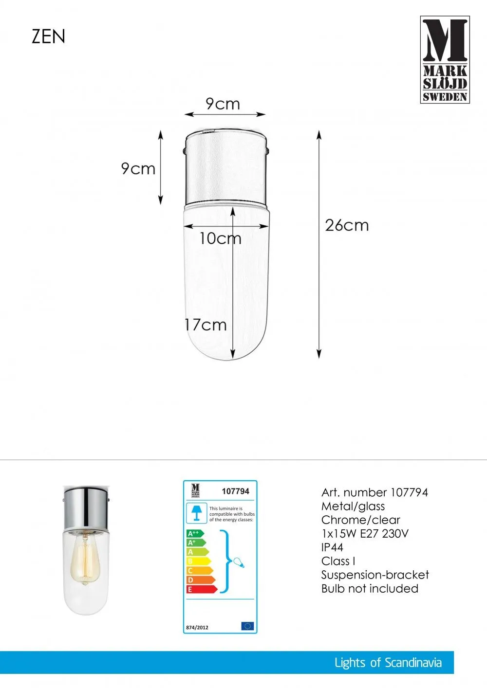 Markslöjd ZEN Mennyezeti 1L Króm/Átlátszó IP44