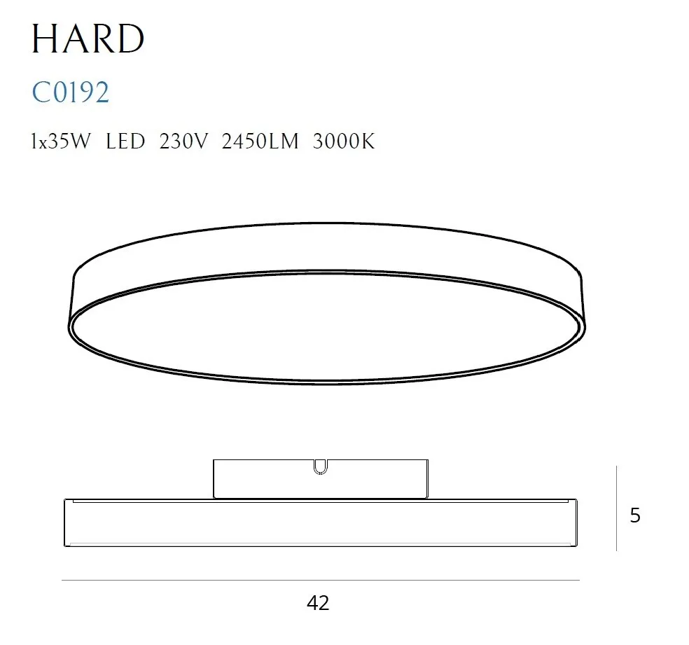 Moc/Power: 1 x 35W LED 230V, 2450 LM_x000D_, CRI 80 3000K_x000D_ H: 5 cm, Ă: 42 cm_x000D_ WykoĹ„czenie/Detail finishing: czarne/black_x000D_ MateriaĹ‚/Material/: metal, akryl/metal, acrylic_x000D_ LED 3000K+ zasilacz w komplecie /LED 3000K+ trafo included