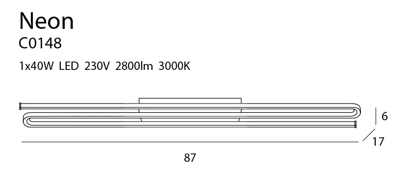Moc/Power: 1 x 40W LED 230V, 2800 LM W: 87 cm, D: 17 cm, H: 6,0 cm Wykończenie/Detail finishing: czarne/black Materiał/Material: metal, akryl/metal, acrylic LED w komplecie/LED included 3000K
