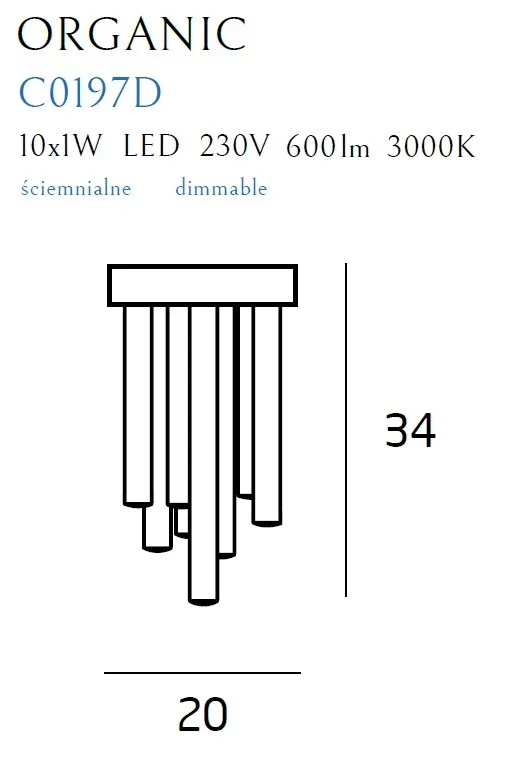 Moc/Power: 10 x 1W LED 230V 600 LM, CRI90 3000K_x000D_ H: 34 cm, Ă: 20 cm_x000D_ WykoĹ„czenie/Detail finishing: zĹ‚oty/gold_x000D__x000D_ MateriaĹ‚/Material: stal nierdzewna, akryl/ stainless steel_x000D__x000D_, acrylic_x000D__x000D_ Zasilacz + LED Ĺ›ciemnialny w komplecie/ Triac dimmable LED + driver included_x000D_ nie zawiera Ĺ›ciemniacza Ĺ›ciennego/ wall dimmer not included